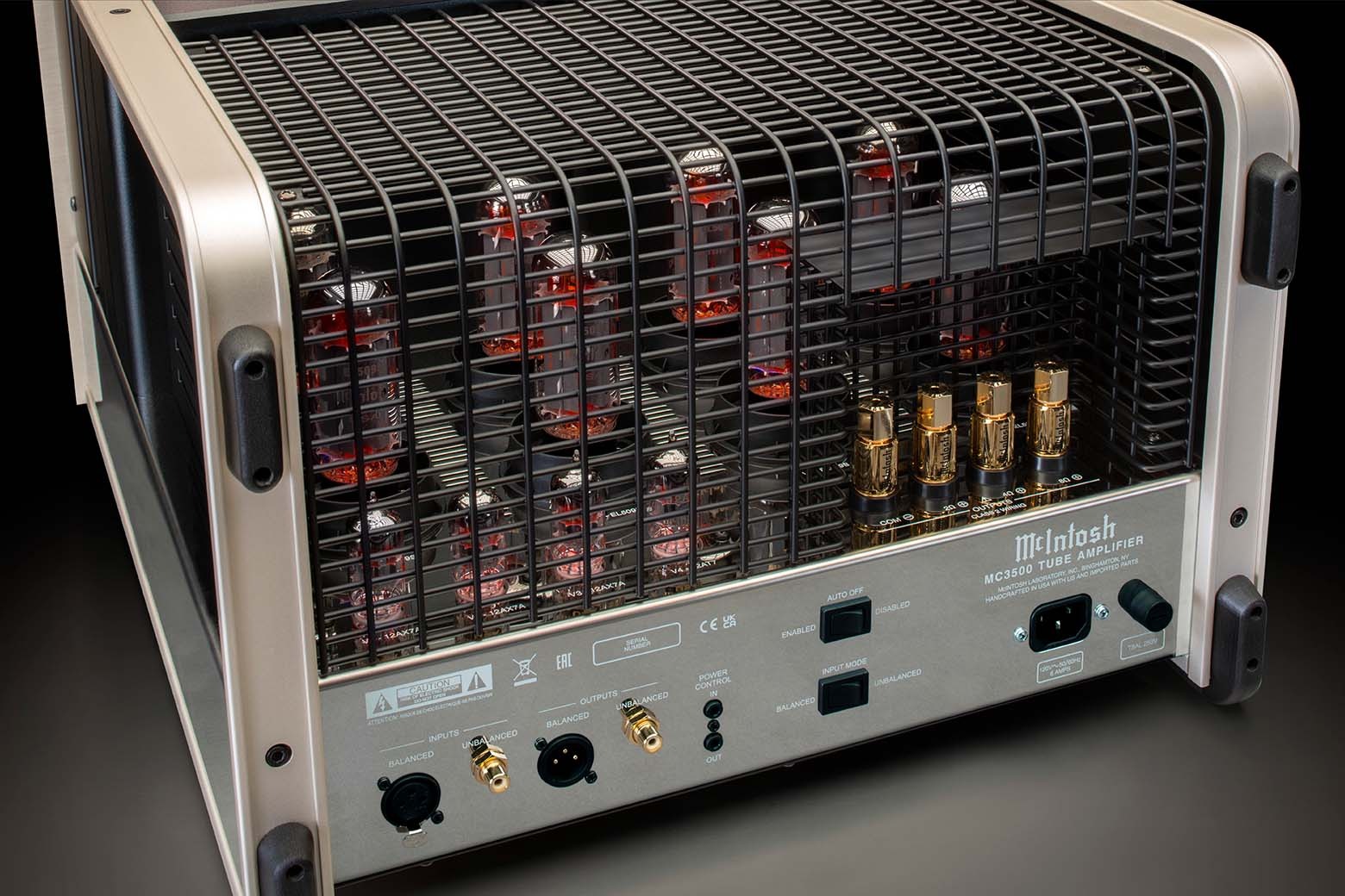 Bên trong, tám bóng đèn EL509S cao áp được sắp xếp đối xứng, không chỉ đảm bảo sự cân bằng nhiệt mà còn góp phần vào vẻ đẹp thẩm mỹ khi chúng phát sáng ấm áp trong quá trình hoạt động. Các cổng kết nối phía sau, từ input XLR cân bằng đến output loa Solid Cinch chắc chắn, được bố trí logic, hỗ trợ cả trở kháng 2, 4 hay 8 ohm mà không hề lỏng lẻo. Tổng thể, thiết kế của Power ampli McIntosh MC3500 không chỉ bền bỉ với vỏ thép chống rung mà còn dễ dàng tích hợp vào không gian nghe hiện đại, nơi mà sự hoài cổ gặp gỡ công năng, mang lại cảm giác sở hữu một báu vật âm thanh thực thụ.